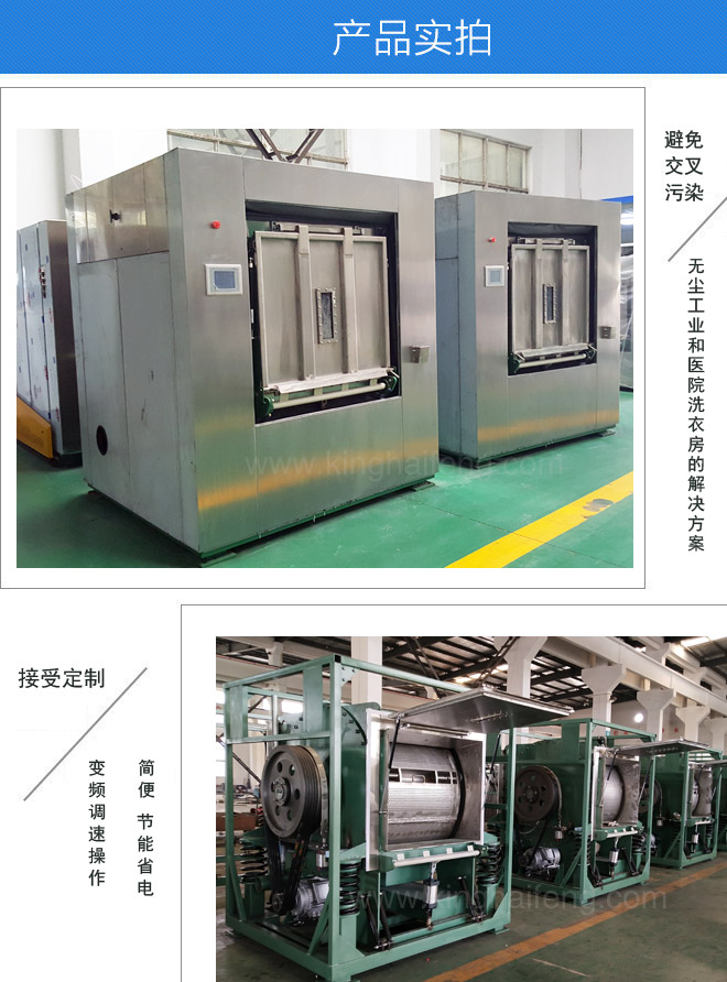 衛(wèi)生隔離式洗脫機(jī)理念:將洗衣房分成了潔凈區(qū)和非潔凈區(qū)兩個(gè)獨(dú)立的操作空間。洗滌物由位于非潔凈區(qū)一側(cè)的機(jī)門裝入,洗滌完畢后從位于潔凈區(qū)一側(cè)的機(jī)門取出,防止洗滌物由于從非潔凈區(qū)裝載和出料引起的交叉污染,是醫(yī)療行業(yè)、醫(yī)藥企業(yè)、電子廠、無(wú)塵行業(yè)、及醫(yī)院洗衣房的理想洗滌解決方案。